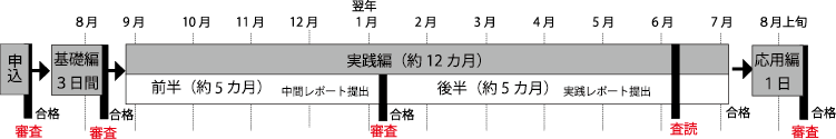 | 第3部 応用編 | 会場集合型で、1日研修を開催します。応用編への参加は、第2部のレポートに合格することが要件となります。 |