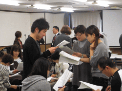 アドバンス編は、前日の初級編の講義に参加した者か実際に被災地に支援に行った者を対象に行われる講義であり、私は、被災地支援にも行っていましたが前日の講義にも参加させていただきました。2日間を通じて、被災地の現状や被災地支援、何よりも自分が震災にあったことをイメージすることのできる頭と心を使う研修だったように感じます。2日目の朝には地震の夢で目が覚めてしまったほど、日常的に意識はしていたとしても深く考えていなかったのだと思い知らされたような気がしました。